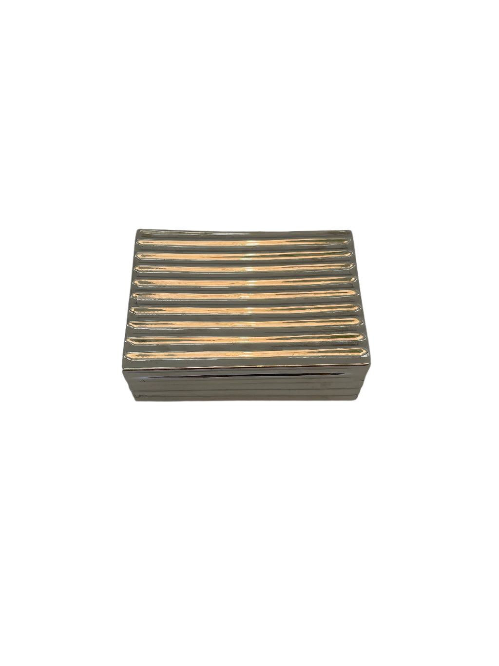 Rectangle Box with Ribbed Lid in Shiny Nickel