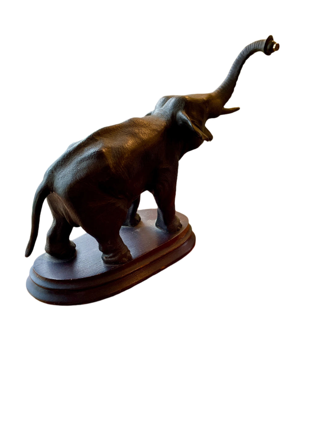 Vintage Elephant Statuette in Patinated Bronze with Base