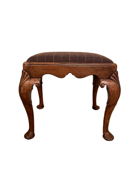 We love this stool and its fabulous curves. The old walnut has the most beautiful patina and it is complimented so beautifully with classic wool plaid upholstery.