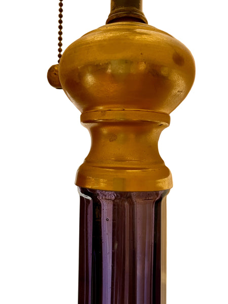 Vintage Italian Purple Glass and Brass Lamp With Shade